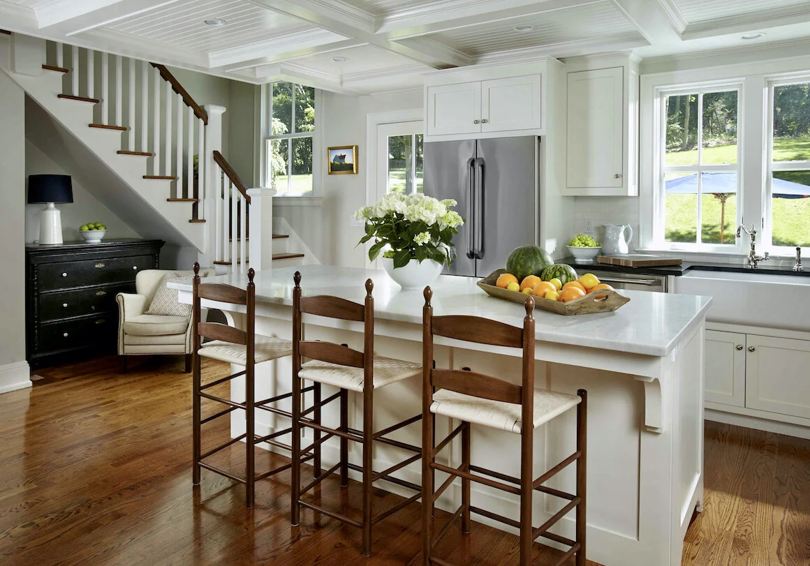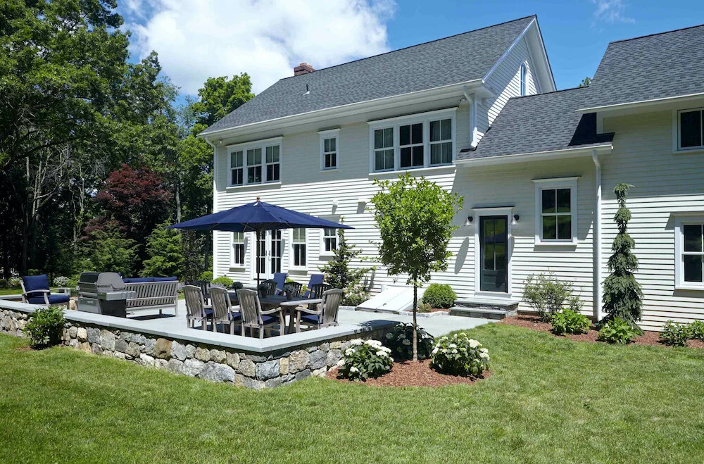 A 1940’s cape was demolished down to the second floor deck, and transformed into a vernacular farmhouse, in Fairfield, CT.